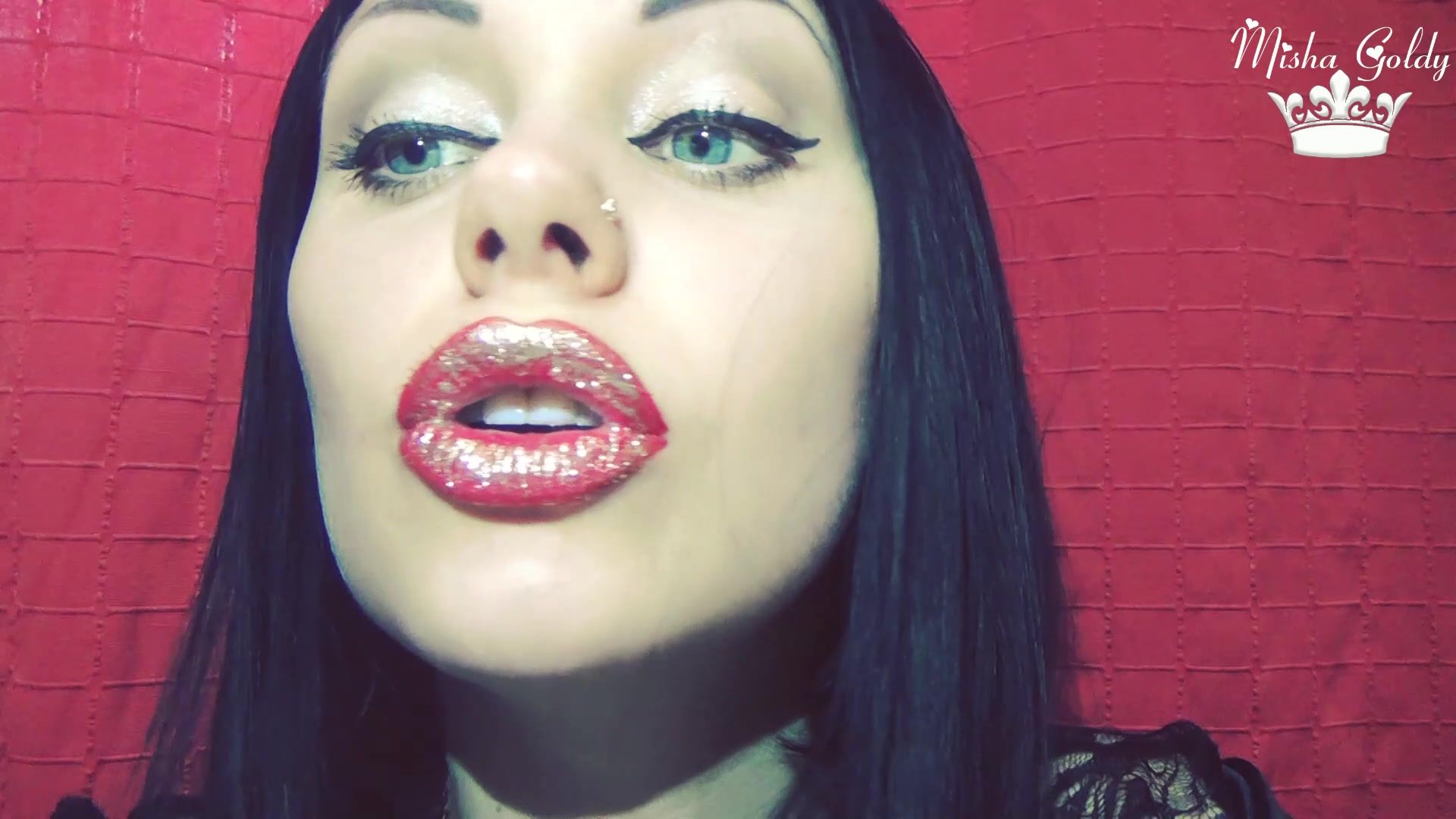 Mistress Misha Goldy Red lips with golden glitter